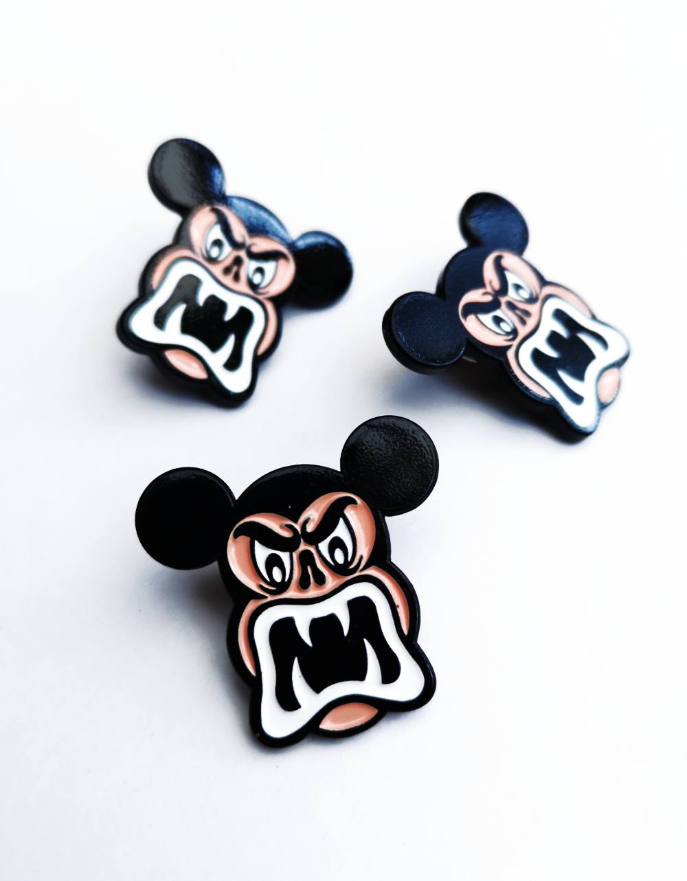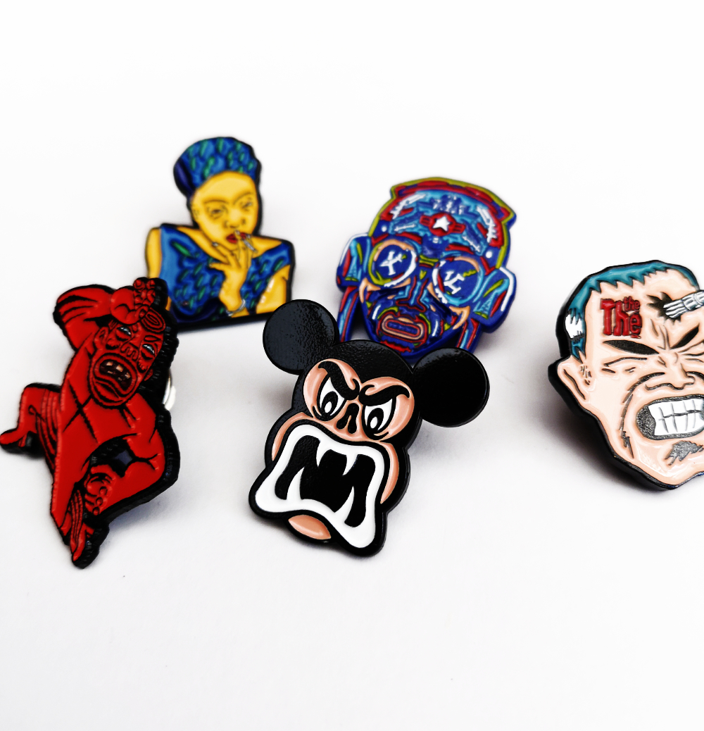 This enamel badge features a recurring theme from the pages of Andy Dog’s sketchbooks, which he named ‘Narnia’. He printed this strong, graphic image on a t-shirt in the 90s… and it now features as the cover of THE THE’s 7″ single $1 ONE VOTE!