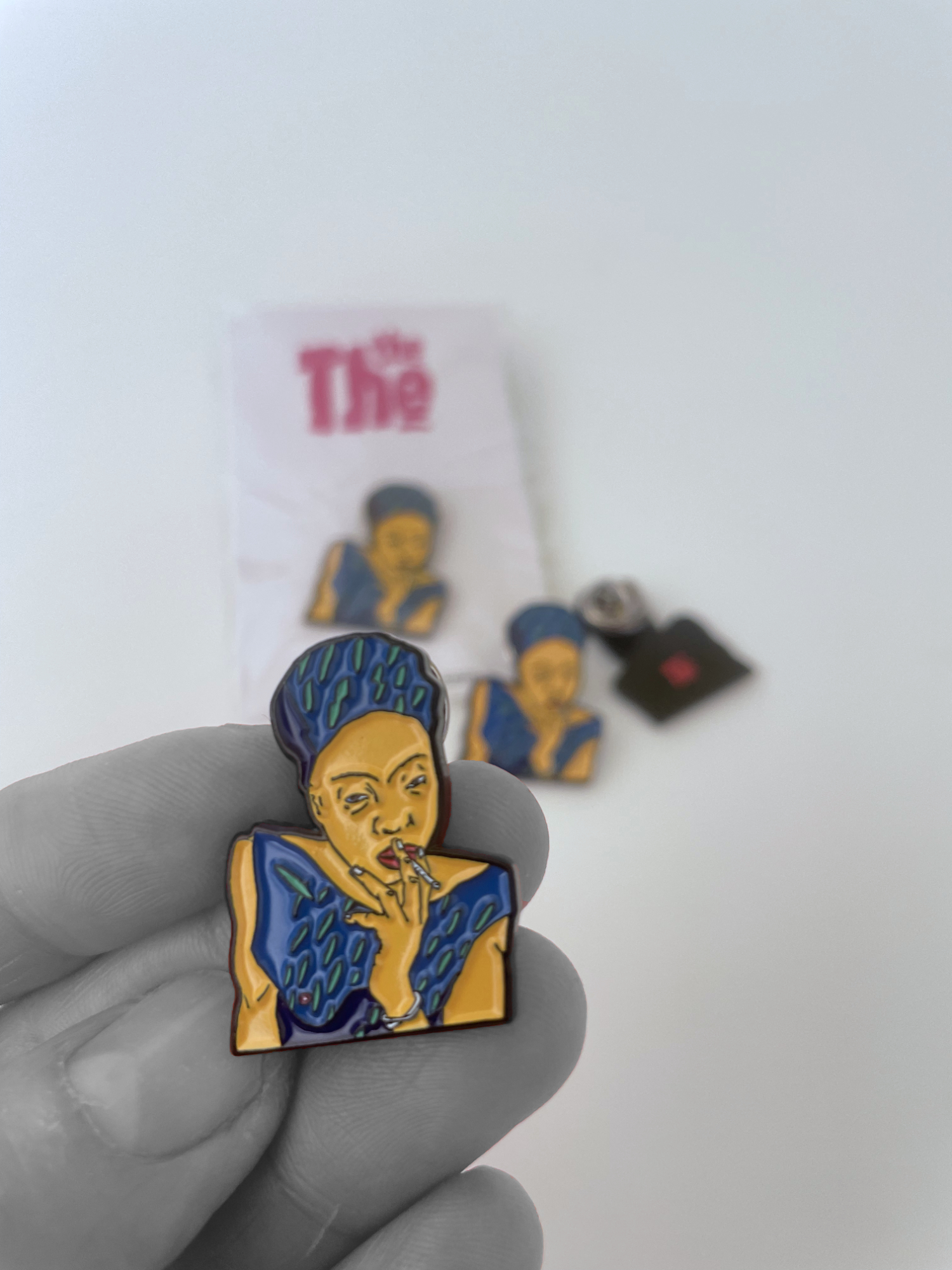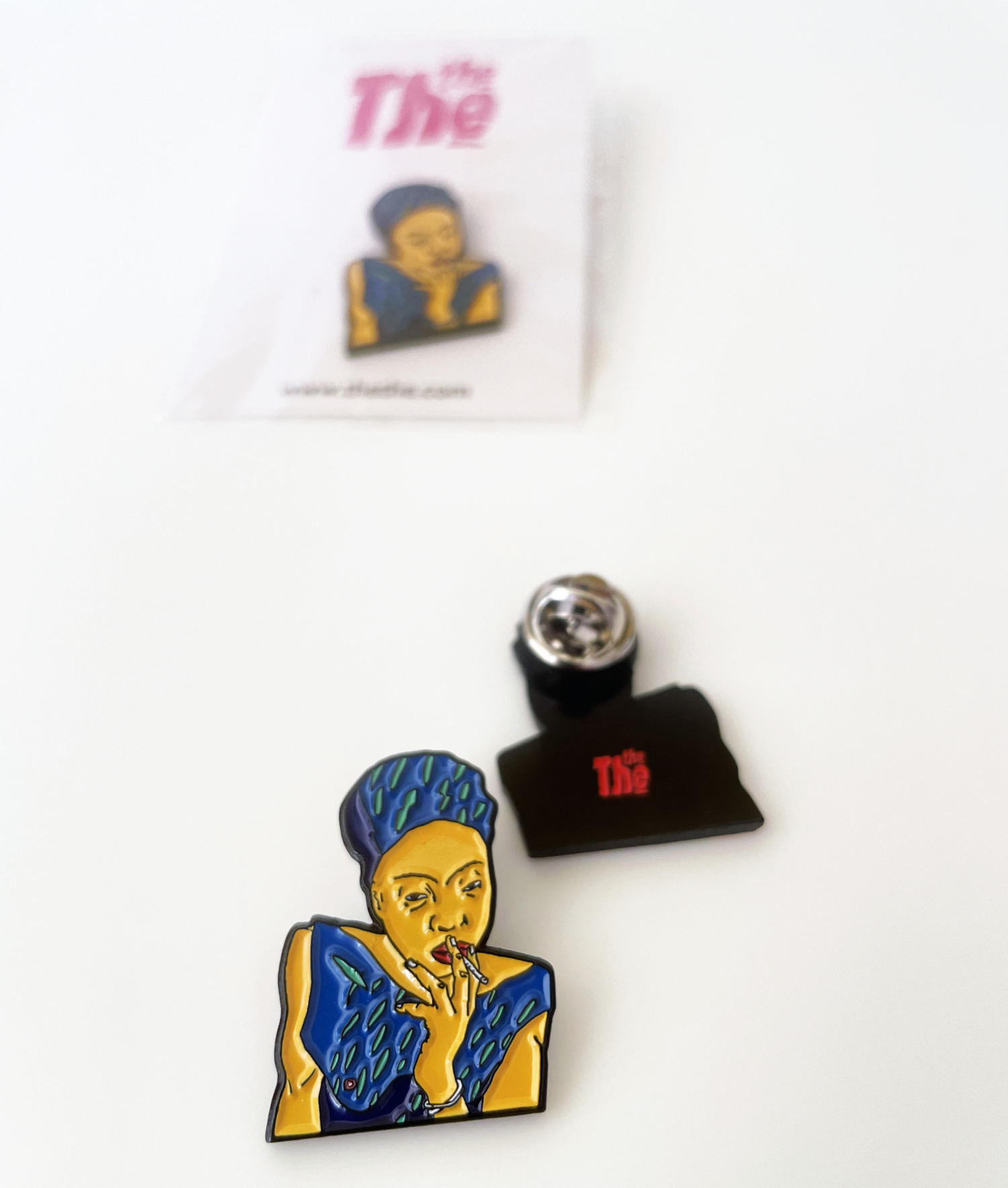 Though small and jewel-like at 28mm x 22mm, this enamel bronze badge has a pleasing heft of 2mm thick, with a butterfly fastening and red THE THE logo de-bossed into the back.