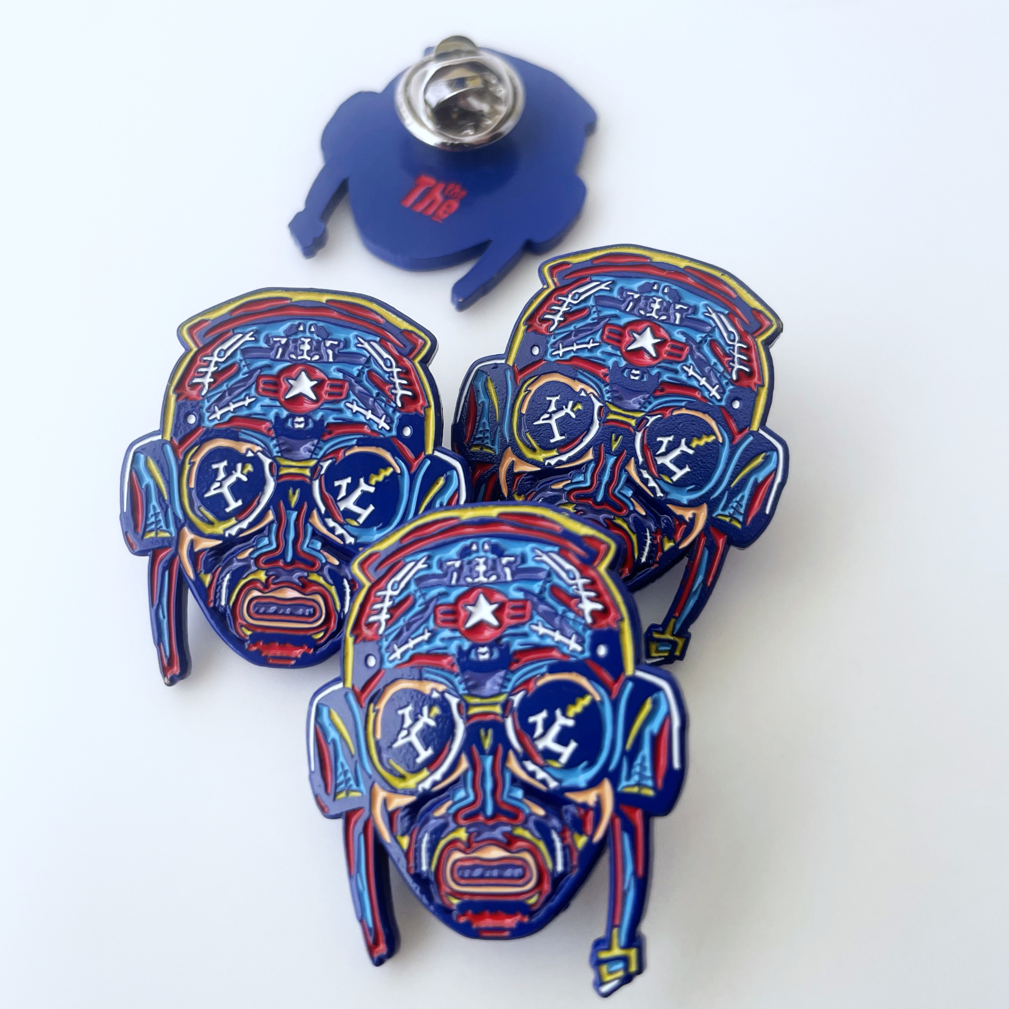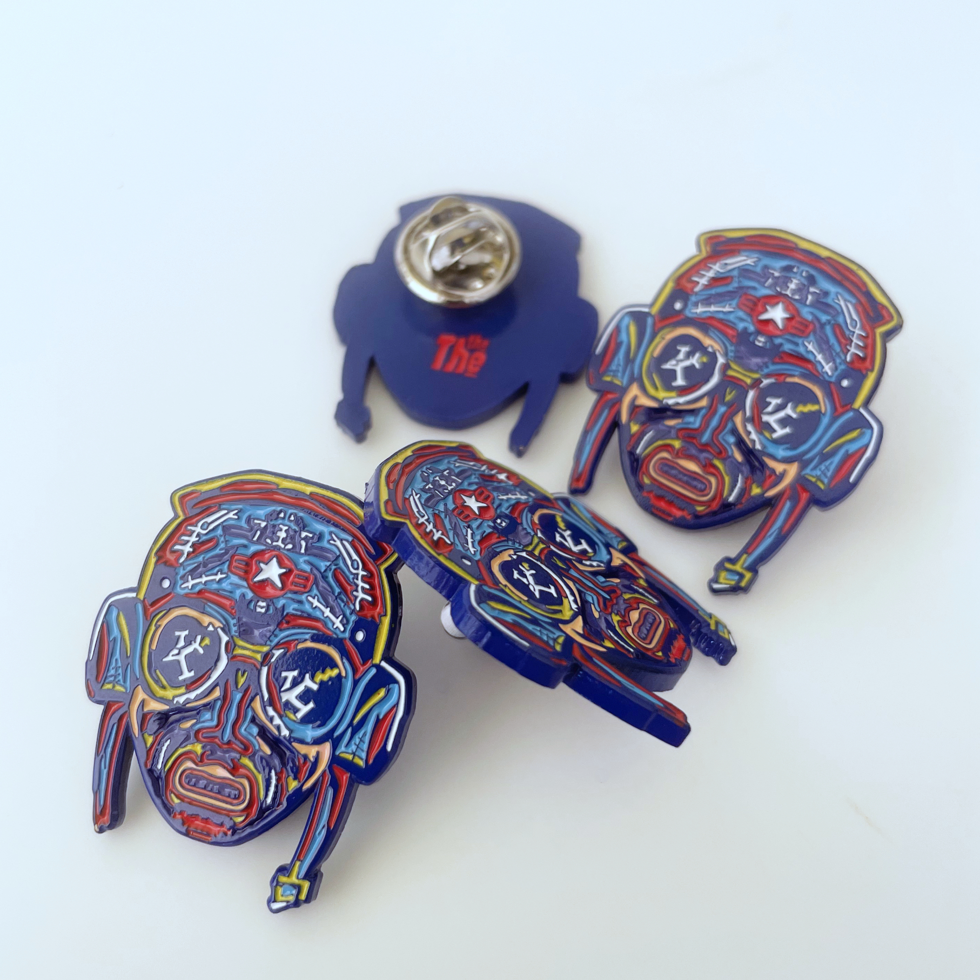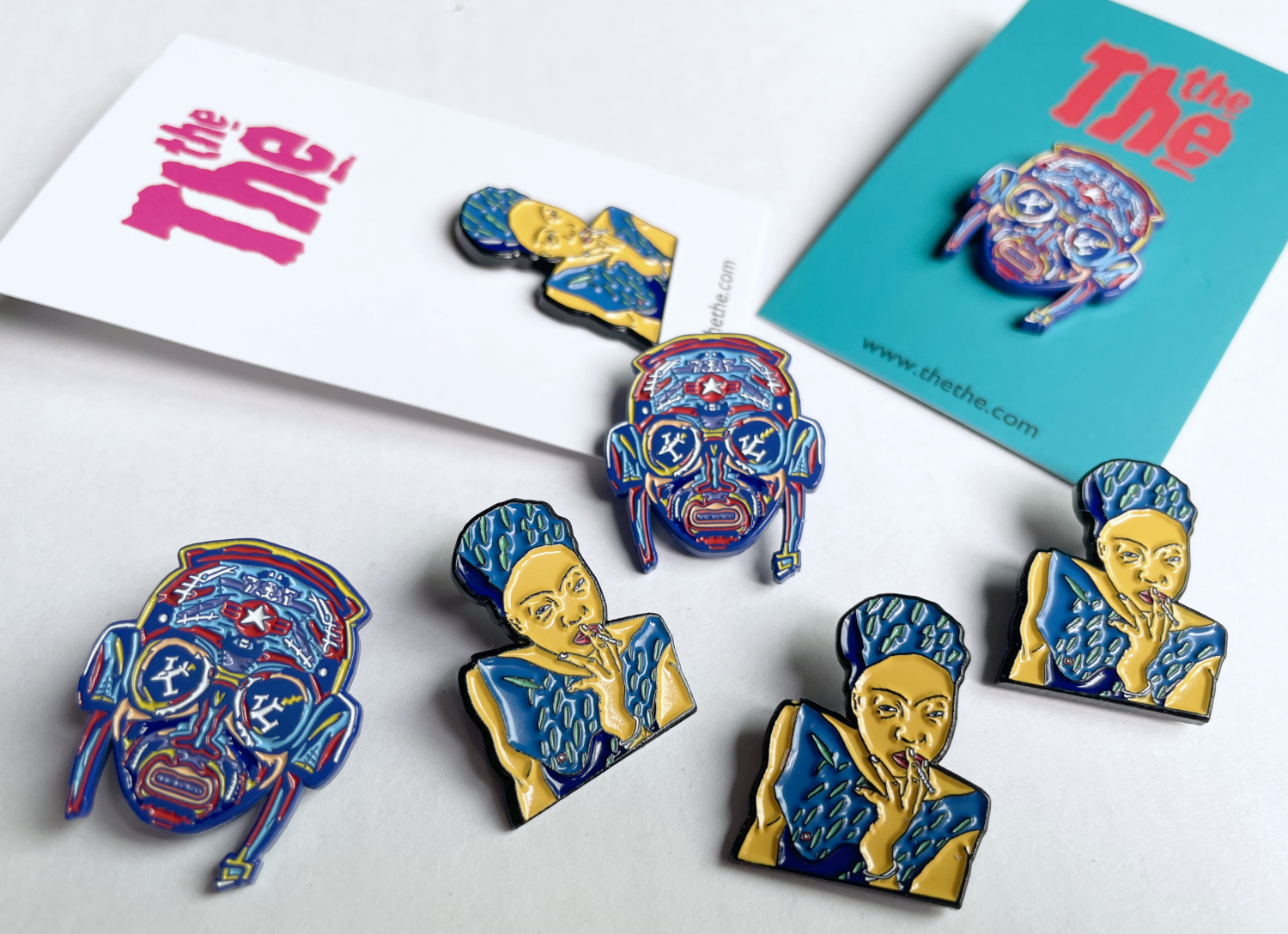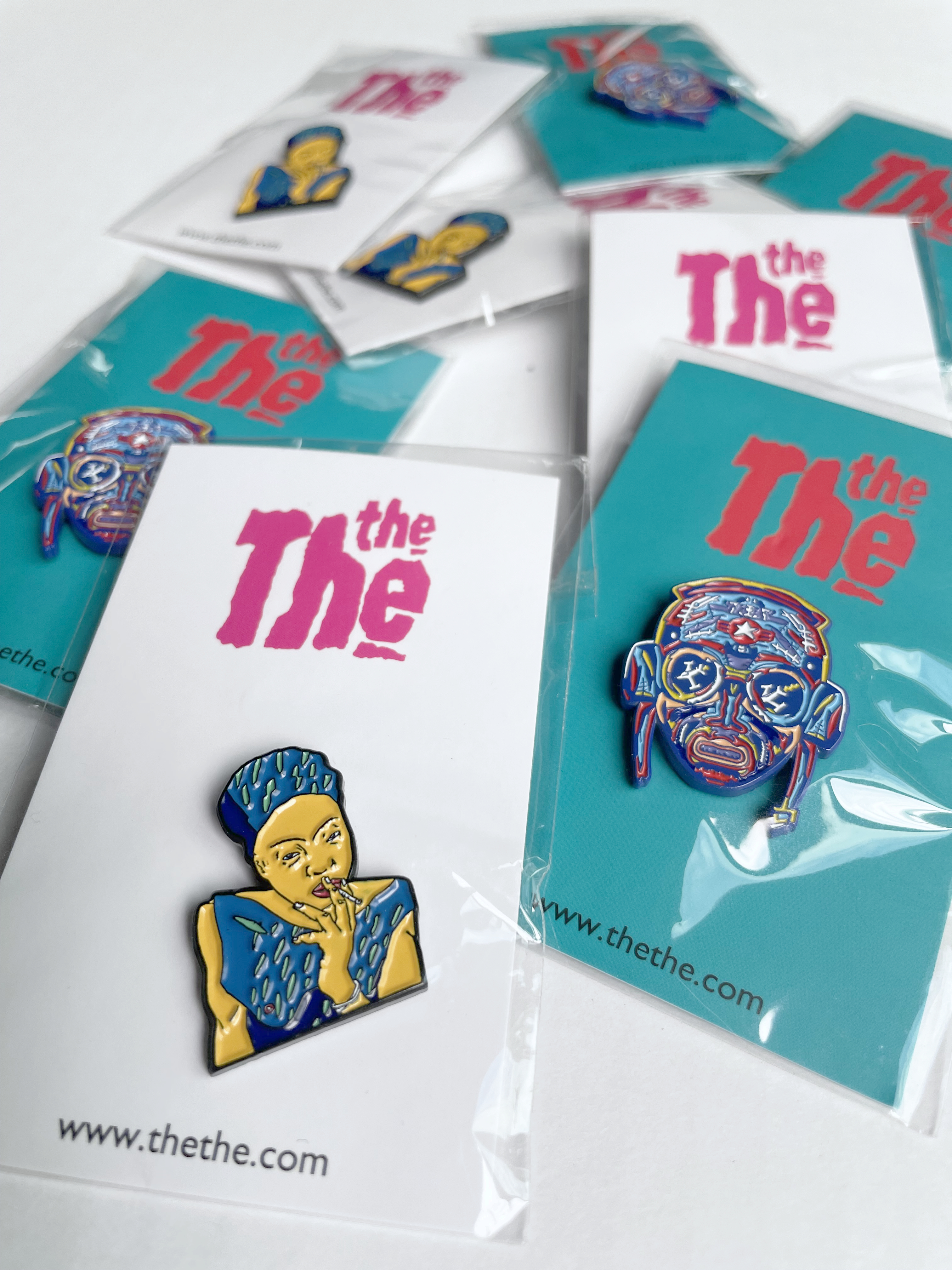 Though small and jewel-like at 30mm x 30mm, this enamel bronze badge has a pleasing heft of 2mm thick, with a butterfly fastening and red THE THE logo de-bossed into the back.